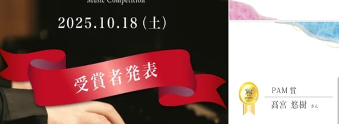 10月18日に開催された第4回Para国際音楽コンクールにおいて、高等部専攻科生活科の高宮悠樹さんが、PAM賞を受賞しました。受賞曲は、ショパン第6番 「ノクターン」。学院内でも様々な場面で素敵なピアノの音色を聴かせてくださっているのですが、本コンクールにての受賞、皆で喜び合いました。おめでとうございます!