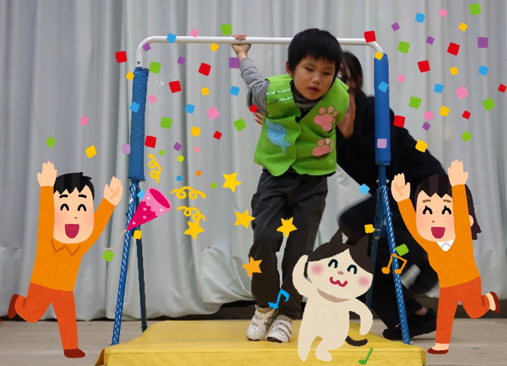 今年の幼小グループは、5匹のかわいい動物たちが、それぞれの特技で泥棒に立ち向かいました!まずはロバが華麗なドラムのバチさばきで、泥棒の足をすくませることに成功!すかさずイヌが、完璧すぎる「ふとん干しのポーズ」で泥棒にショックを与えます!するとネコは、なんと10秒も鉄棒にぶら下がるという大技を繰り出して、泥棒は仰天!!最後はめんどり姉妹が、プッシュプッシュの力強い腕立てふせと豪快な飛び蹴りで、見事泥棒を撃退したのでした!