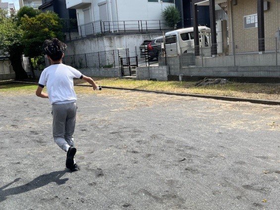 10月25日(土)の運動会に向け、各グループでダンスや体操、鉄線走等に取り組んでいます。鉄線走は、一直線に張られたワイヤーを手掛かりに、ゴール地点からの掛け声に向かって走ります。目が見える子どもたちは、日常の様々な動作を見て真似をして獲得していきます。それに対して、先天性の全盲の子どもたちは、模倣することができません。「走る」という動作は、足を地面から離して、膝を曲げながら、手を振って前に進むことの連続です。手は物にぶつからないように防御の姿勢をとることが当たり前で、足を地面から離し、手を振ることはとても勇気のいることです。ことばで説明をし、体を触りながら動きを教えていく中で、子どもたちは回を重ねることによってスムーズな動きになっていきます。